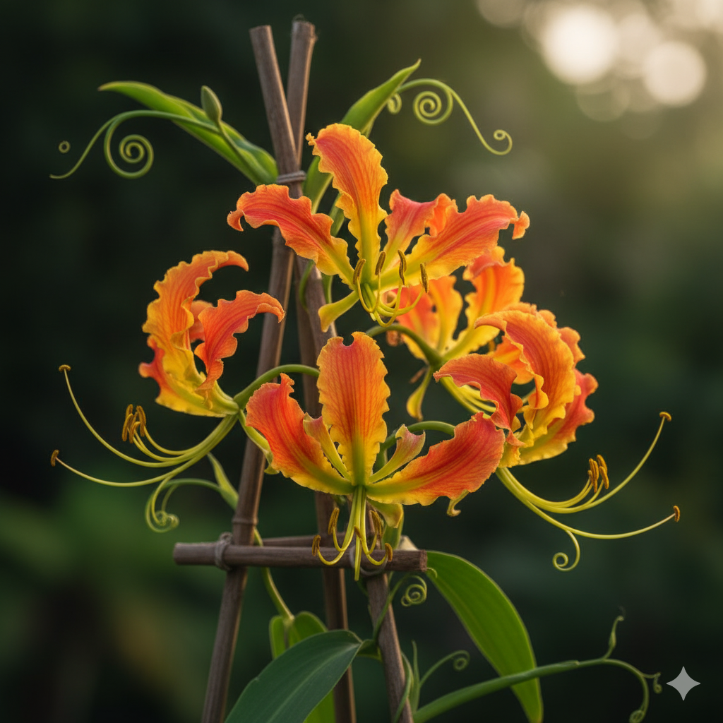 Comprende 6 specie di origini tra l′Asia tropicale e l′Africa. É una pianta rampicante con fiori rossi e bordure colorate fatta fi 6 petali sottili. Dal 1690 e′ coltivata anche in occidente, nota in tutto il mondo con i nomi " giglio del Mozzabianco" o "giglio rampicante del Malabar" Clima: Ama stare al sole. Irrigazione: In estate ha bisogno di annaffiature frequenti mentre nei periodi freddi si sospendono. Fioritura: Fiorisce tra giugno e settembre.